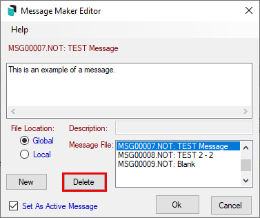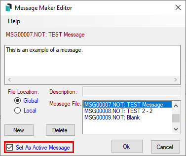 - If you selected yes, then the text description box for the message will appear above the message file list, type in the new description then click OK.