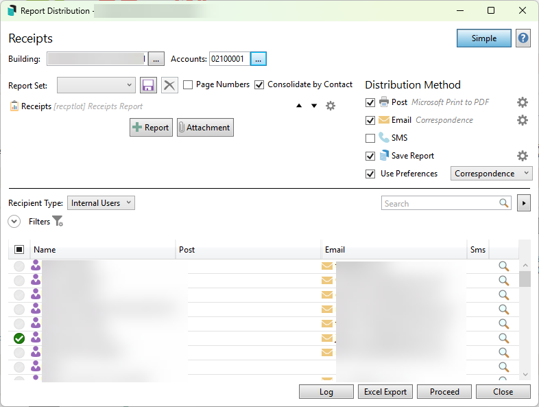 The Receipt Reports will list all receipts for a specified period and include options to include selected accounts.