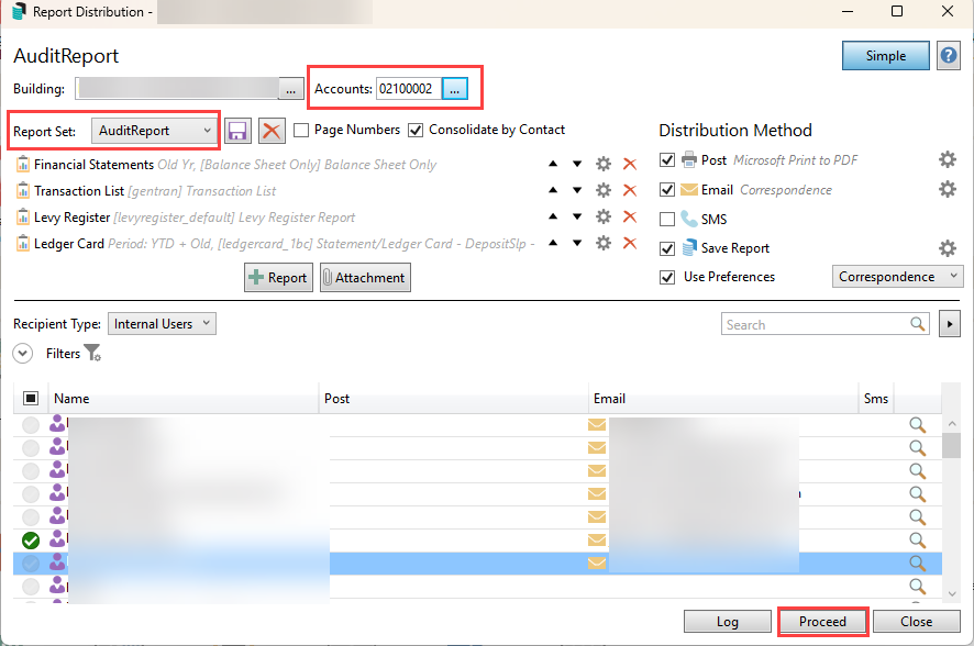- From the preview window, select Proceed to distribute the report set as per the distribution method. Or alternatively, use the Save icon to save the documents, email icon to email separately, or DocMax icon to save to DocMax as a separate action.