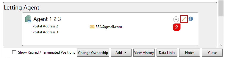 - Within the required contact area: Owner, Real Estate Agent, Tenant etc., click the pencil icon to edit the contact information.