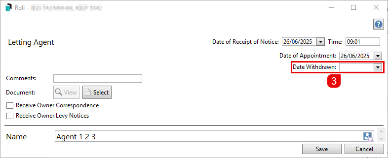 - If this person is to receive any documents, reports or notices, select Receive Owner Correspondence and or Receive Owner Levy Notices to include this agent to receive each respective communication type. These are the only two types that can be set to receive owner communication.