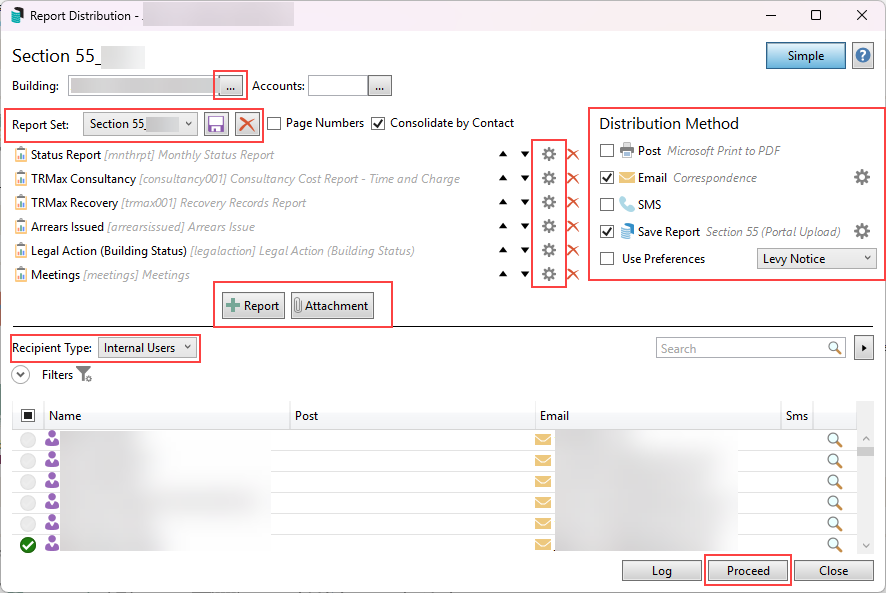A: If you need to regenerate a Status Report, you’ll need to go through the Report Distribution window and tag a recipient (such as the Body Corporate Manager contact). Before doing this, it's best to pause emails in Communication to prevent unnecessary emails from being sent.