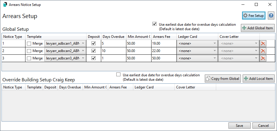 - Redesigned Arrears Setup interface displaying all the information within the one screen.